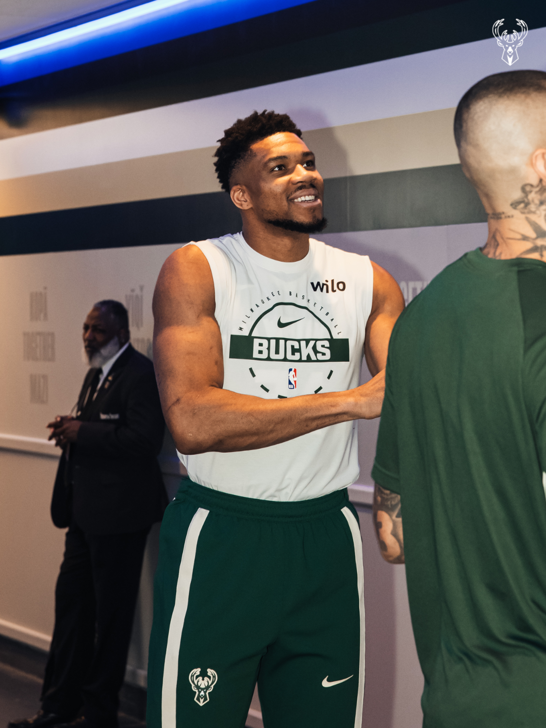 雄鹿队首发阵容:罗林斯、格林、哈里斯、库兹马、阿德托昆博